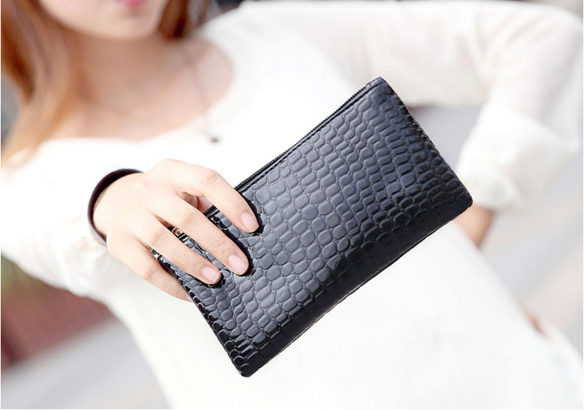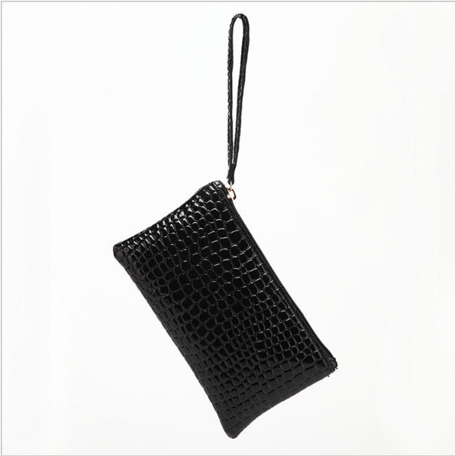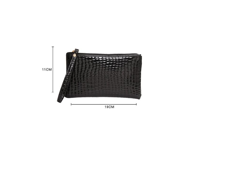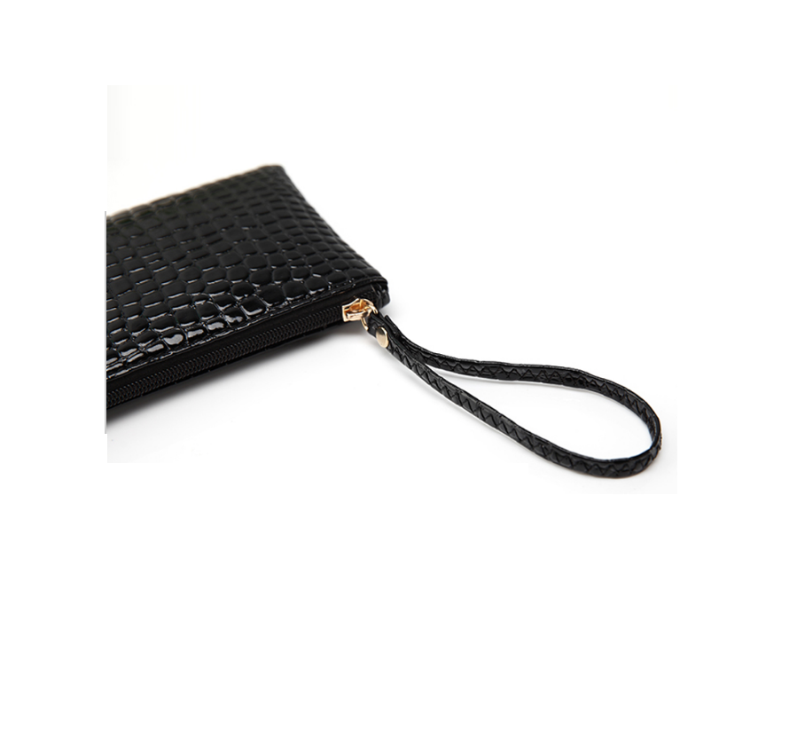 De clutch heeft een ritssluiting en een polsbandje boven en is ook te gebruiken als make-up tasje.