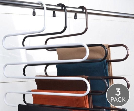 Ook problemen met kastruimte? Dan zijn deze stevige broekhangers de oplossing! Hang tenminste 5 broeken op aan slechts één hanger. Hierdoor bespaar je ontzettend veel ruimte in je kledingkast. De broekhangers worden geleverd in een 3-pack, dus genoeg ruimte voor minimaal 15 broeken.